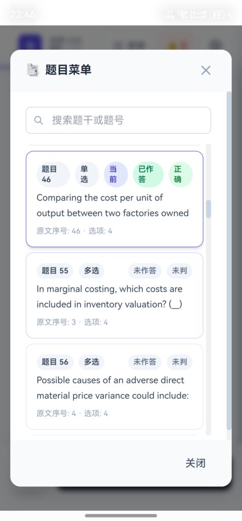 提交后显示正确答案、原文参考;支持多选判断与高亮反馈。 - 题目菜单与搜索